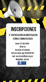 Organizado por: Sociedad de Investi-gación Clínica de Córdoba (SICC). Auspicia: Círculo Médico de Córdoba (CMC) y Sistema de Evaluación, Registro y Fiscalización de las Investigaciones en Salud (S.E.R.F.I.S)